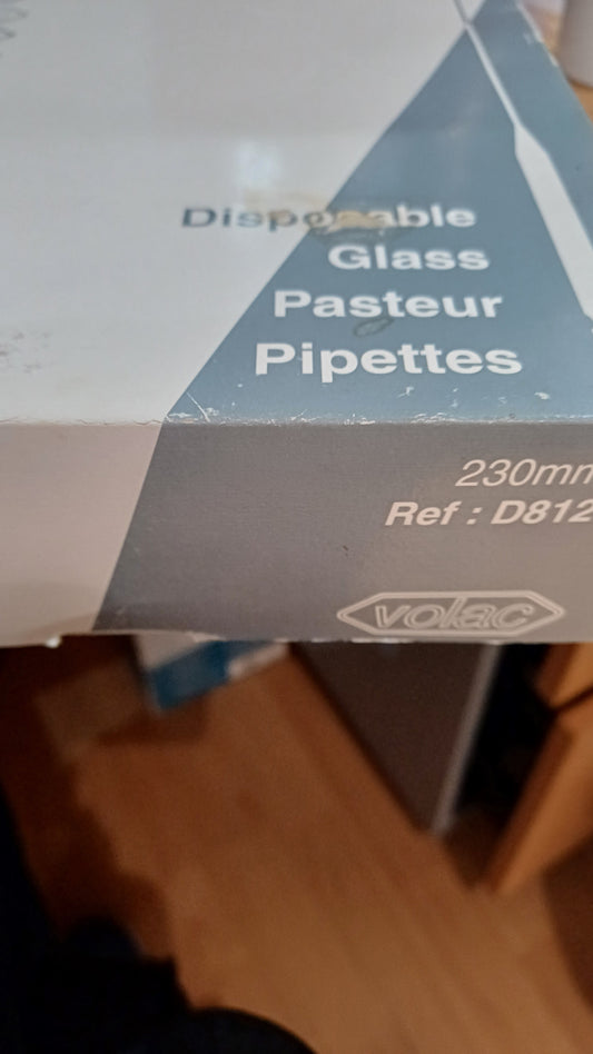 VOLAC D812 Cut Jet Disposable Glass Pasteur Pipettes 230mm, 250 Pack